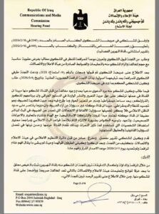 وتطالب الجمعية السلطات بمراجعة قرارات هيئة الإعلام والاتصالات، وإعادة النظر في سلوكياتها إزاء الإعلام، كونها تنتهك الدستور وتتجاوز صلاحياتها التنظيمية، مما يحول الهيئة إلى ما يشبه وزارة إعلام، كان الدستور العراقي قد حلّها استنادا الى التحول من النظام الدكتاتوري الى التعددي الديمقراطي.